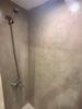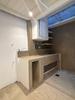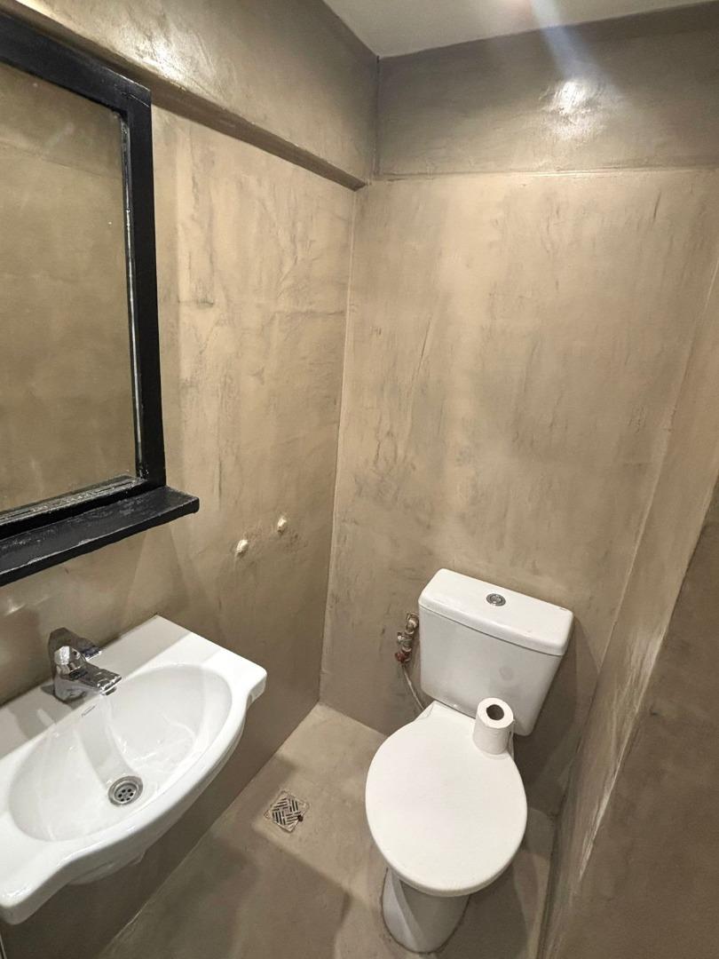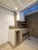Cocina integrada y baño con sector de ducha.